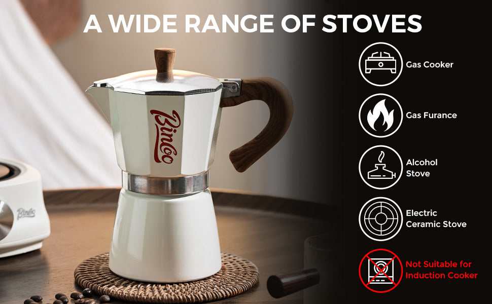 BINCOO Moka Pot Set| Electric Stove| Coffee Grinder| Coffee Pot| Coffee Filter| Leveler.